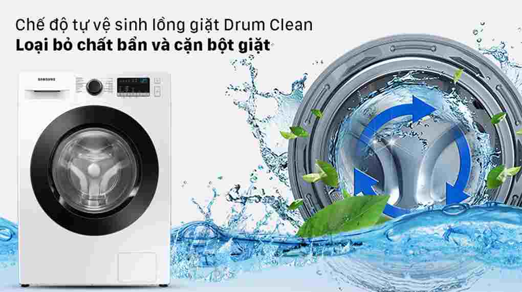 Chế độ tự vệ sinh lồng giặt của máy giặt inverter WW95T4040CE/SV sẽ vệ sinh cửa máy giặt và cả bên trong lồng giặt nhờ trang bị vòi phun với lực nước mạnh mẽ giúp loại bỏ cặn bám và hạn chế vi khuẩn gây mùi trong lồng giặt mà không cần phải sử dụng hóa chất.