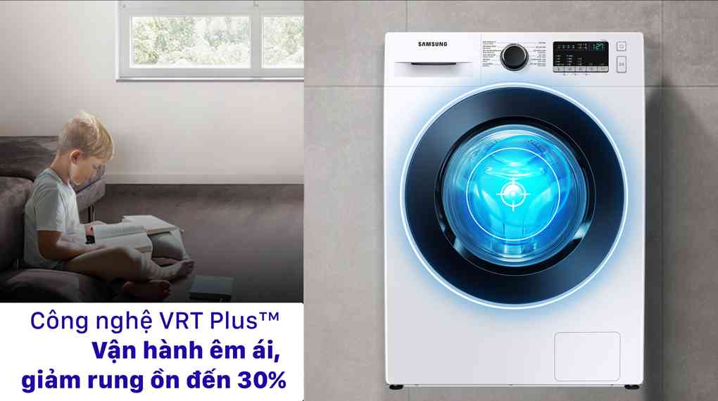 Máy giặt WW95T4040CE/SV được trang bị công nghệ VRT Plus™ giảm rung ồn đến 30% trong quá trình giặt, kể cả khi đang vắt với tốc độ cao và ở bất kỳ tải giặt nào.