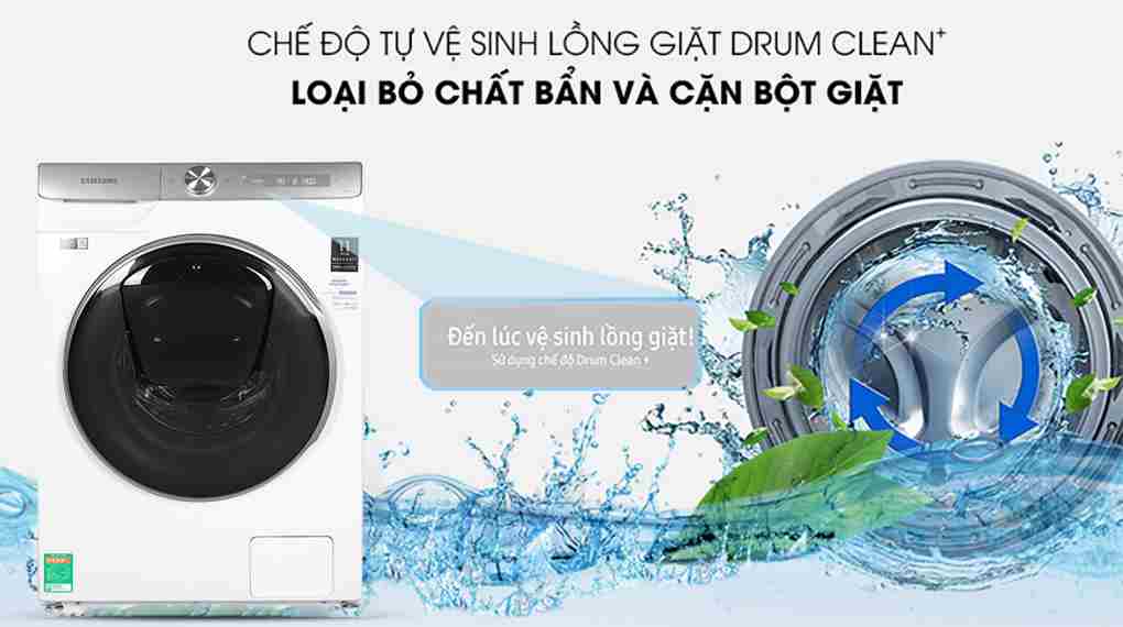 Chiếc máy giặt Samsung giá rẻ 9kg WW90TP54DSH/SV được trang bị chế độ vệ sinh lồng giặt Drum Clean+ giúp loại bỏ cặn bám từ gioăng cửa và lồng giặt, và diệt 99,9% vi khuẩn gây mùi trong lồng giặt mà không cần phải sử dụng hóa chất. Ngoài ra, máy sẽ tự động thông báo khi lồng giặt cần vệ sinh (sau 40 lần giặt).