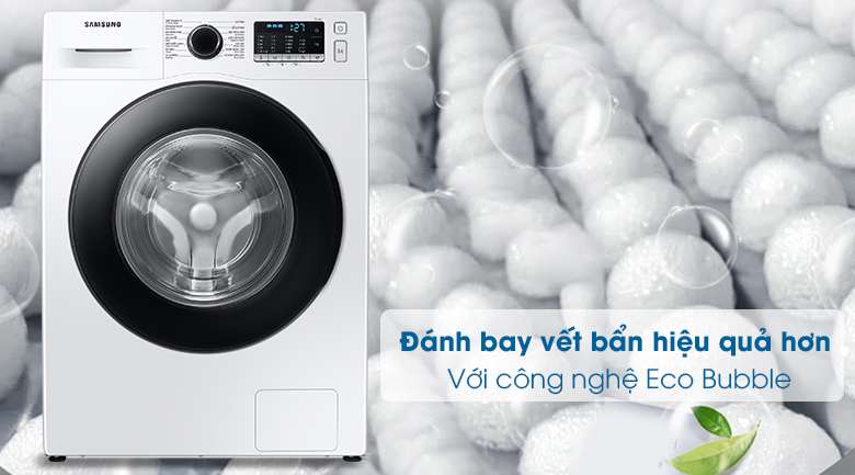 Máy giặt Samsung inverter 9kg WW90TP54DSH/SV còn được sử dụng công nghệ EcoBubble cho phép đánh tan nước giặt/bột giặt thành những bong bóng xà phòng siêu mịn, những bọt này thẩm thấu nhanh và sâu vào bên trong từng sợi vải để loại bỏ vết bẩn cứng đầu dễ dàng.