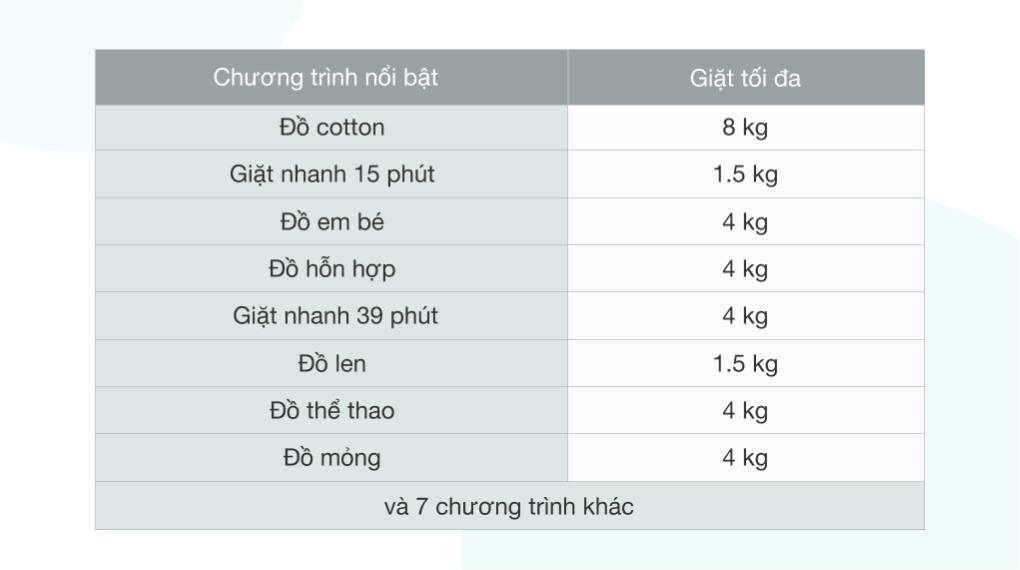 | Khối lượng giặt: | 9 kg |