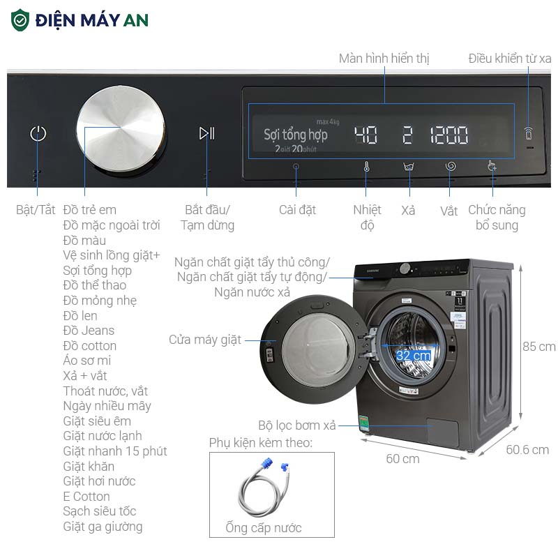 Với tính năng điều khiển từ xa qua ứng dụng SmartThings khi kết nối với điện thoại, là cơ sở để theo dõi, quản lý máy giặt SamSung một cách tiện dụng mọi lúc mọi nơi cho gia đình.