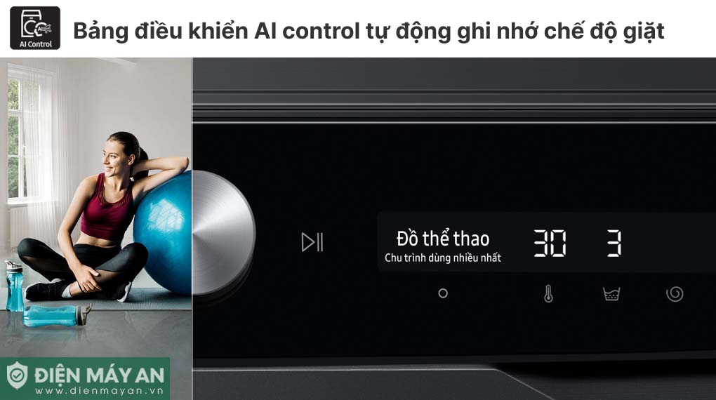 Bảng điều khiển AI Control từ chiếc máy giặt SamSung W90TP44DSB/SV giúp bạn tiết kiệm thời gian và chi phí, bởi khi hoạt động, bảng điều khiển sẽ dựa theo thói quen sử dụng của các thành viên mà sẽ tự động ghi nhớ, đề xuất được chế độ giặt yêu thích để lần sau khi dùng sẽ không cần phải cài đặt lại nữa.