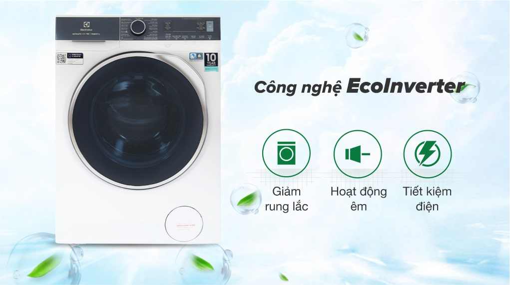 Máy giặt sấy Electrolux EWW1142Q7WB được trang bị công nghệ EcoInverter, có độ bền cao và giảm thiểu độ ồn trong suốt chu trình giặt. Bên cạnh đó, động cơ này cũng mang lại hiệu quả tiết kiệm điện nhờ kiểm soát được vòng quay của máy nén và lượng bột giặt & nước xả trong chu trình giặt.