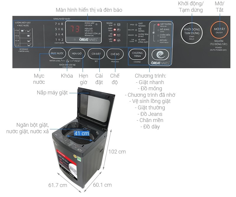 - Được làm từ chất liệu kim loại sơn tĩnh điện chiếc vỏ máy giặt Toshiba với độ bền cao, tránh bị trầy xước khi sử dụng.