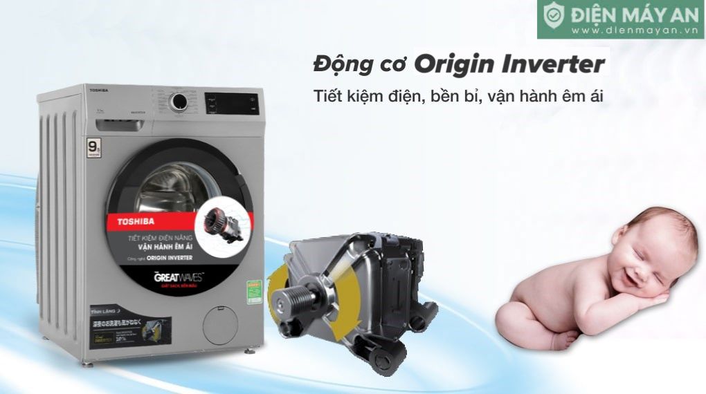 Máy giặt Toshiba 9.5 Kg TW-BK105S3V(SK) sử dụng hiệu quả với công nghệ Orgin Inverter để máy tiết kiệm điện tối đa và đảm bảo độ bền của động cơ