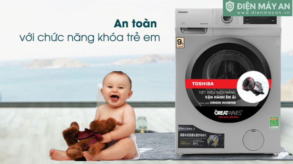 Gia đình bạn hoàn toàn yên tâm khi sử dụng chiếc máy giặt Inverter Toshiba TW-BK105S3V(SK) khi cài đặt chế độ khóa trẻ em, đảm bảo sự an toàn hiệu quả