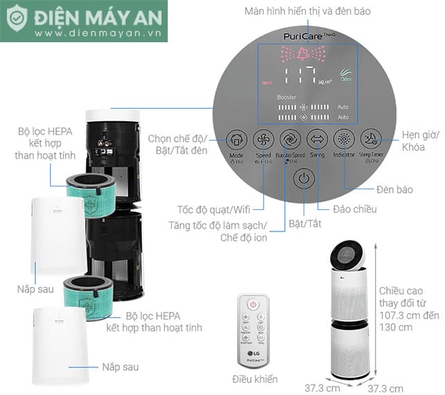 Máy lọc không khí 2 tầng LG PuriCare AS10GDWH0.ABAE 70W đến từ thương hiệu LG, được sản xuất tại Hàn Quốc