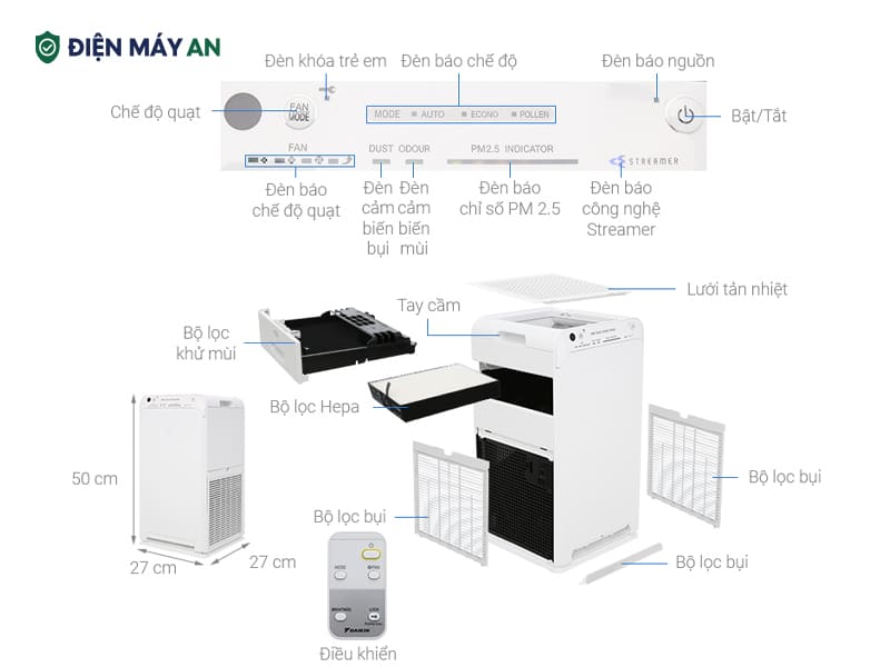 Máy lọc không khí Daikin MC55UVM6-7 37W ra đời như một giải pháp toàn diện để bảo vệ không gian sống luôn lành - sạch trong bối cảnh bầu không khí chứa nhiều bụi mịn, vi khuẩn và tác nhân gây dị ứng. Sản phẩm nổi bật với công nghệ kép Streamer và Ion Plasma độc quyền, giúp phân hủy - vô hiệu hóa - làm sạch hiệu quả đến 99.9% các tác nhân gây hại, mang đến bầu không khí tinh khiết cho gia đình bạn. Cùng Điện máy Quang Hưng tìm hiểu chi tiết qua bài chia sẻ bên dưới này nhé.