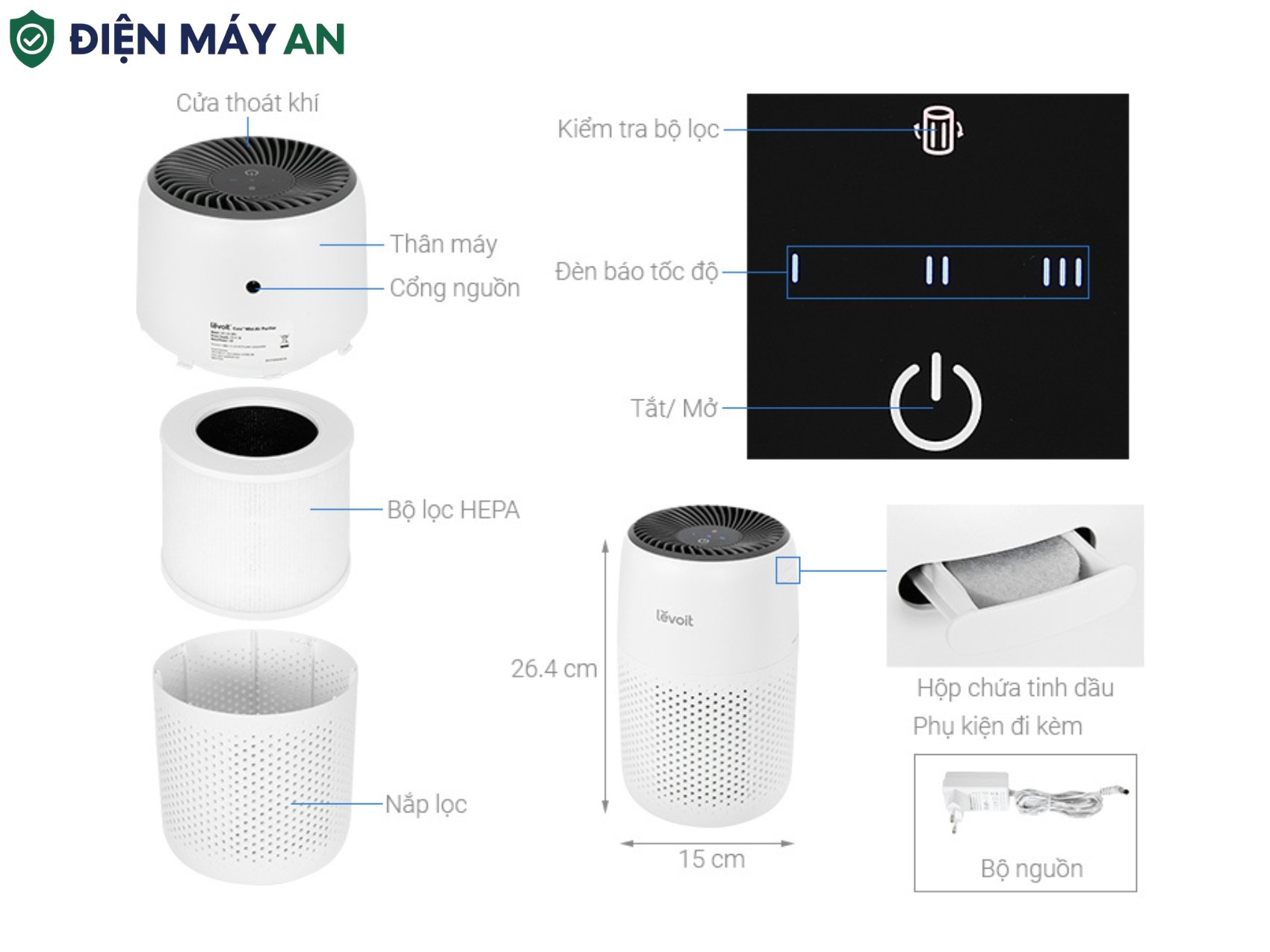 - Máy lọc không khí LVCoreMini sử dụng tối ưu bộ lọc 3 lớp cung cấp khả năng lọc không khí hiệu quả, lọc được bụi mịn PM0.3.