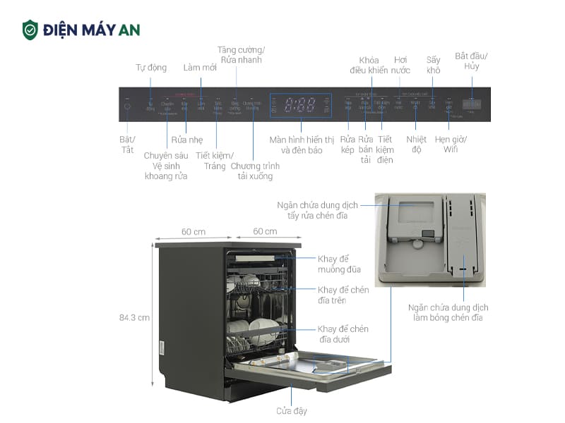 - Chế độ sấy ngưng tụ giúp chén bát khô thoáng, không đọng nước và không ám mùi sau khi rửa.