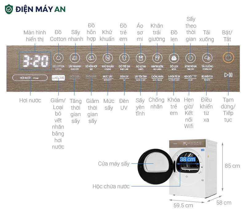 Máy sấy bơm nhiệt TD-T37BS90HWV(WT) được tích hợp nhiều tiện ích: