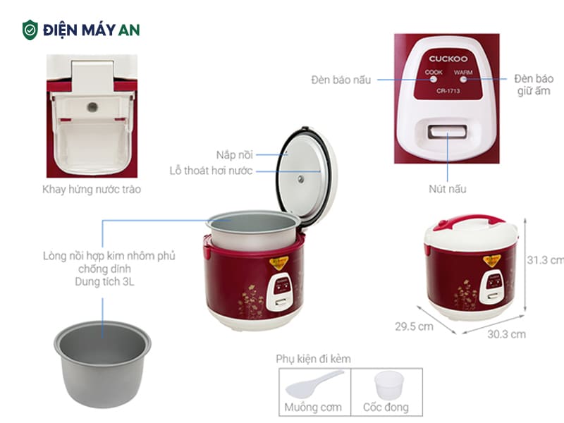 Cuckoo CR-3021 thuộc Thương hiệu Hàn Quốc chất lượng, chuyên sản xuất các thiết bị gia dụng chất lượng cao. Nồi được nhập khẩu trực tiếp, làm từ vật liệu an toàn, độ bền cao, vận hành ổn định và có giá thành phù hợp với nhiều gia đình Việt.