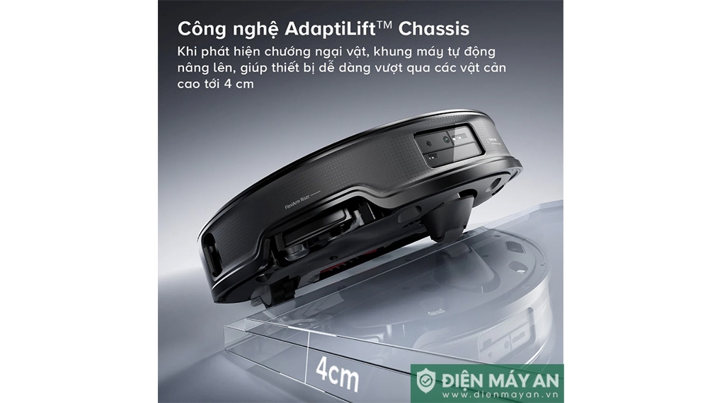 - Hệ thống AdaptiLift™ giúp robot dễ dàng vượt qua các vật cản lên đến 4cm, mở rộng khả năng làm sạch với các địa hình phức tạp. Khi gặp thảm, robot sẽ tự động nhận diện và điều chỉnh chế độ phù hợp.
