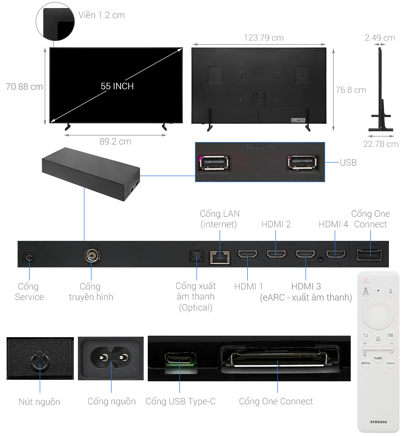 - Trợ lý ảo Bixby với khả năng điều khiển tivi bằng giọng nói tiếng Việt, mang lại sự tiện lợi trong việc sử dụng.