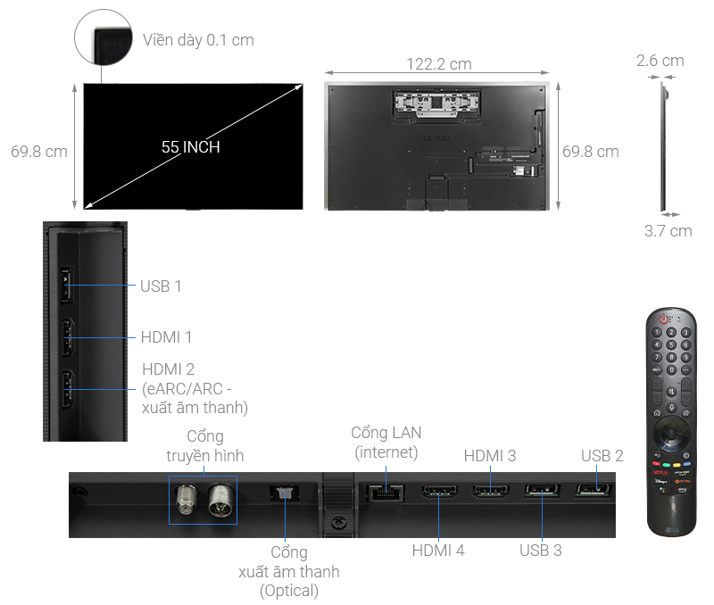 | Cổng nhận hình ảnh, âm thanh: | 4 cổng HDMI có 1 cổng HDMI eARC (ARC) |