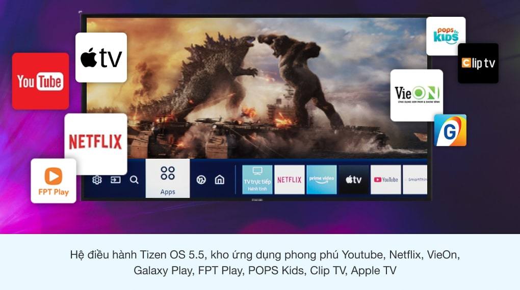 Với công nghệ Tizen OS 5.5, chiếc tivi 43T6000 này sẽ được hoạt động một cách tối ưu, giao diện dễ sử dụng, gần gũi, thuận tiện với mọi lứa tuổi. Phục vụ cho nhu cầu sử dụng tốt hơn nhờ kho ứng dụng đa dạng, phong phú như: VieON, MyTV, Galaxy Play,...