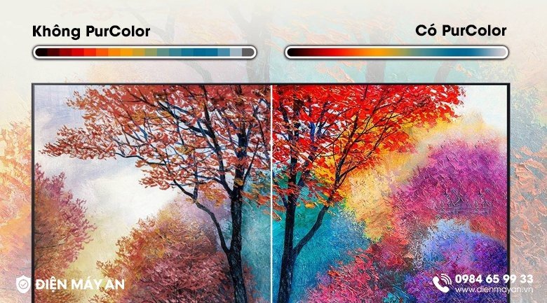 - PurColor thể hiện màu sắc một cách chân thực đến từng chi tiết màu nhạt nhất trên màn hình, giúp tái tạo và tăng cường dải màu chính xác một cách tự nhiên, làm cho bức tranh trên màn ảnh trở nên tươi sáng và sống động hơn bao giờ hết.