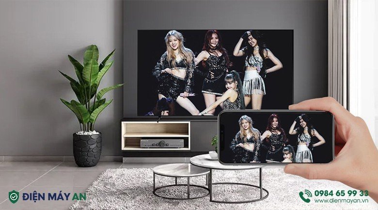 - Bạn có thể trình chiếu màn hình điện thoại lên tivi thông qua tính năng AirPlay 2 (iPhone), Tap View (Samsung) và Screen Mirroring (Android).