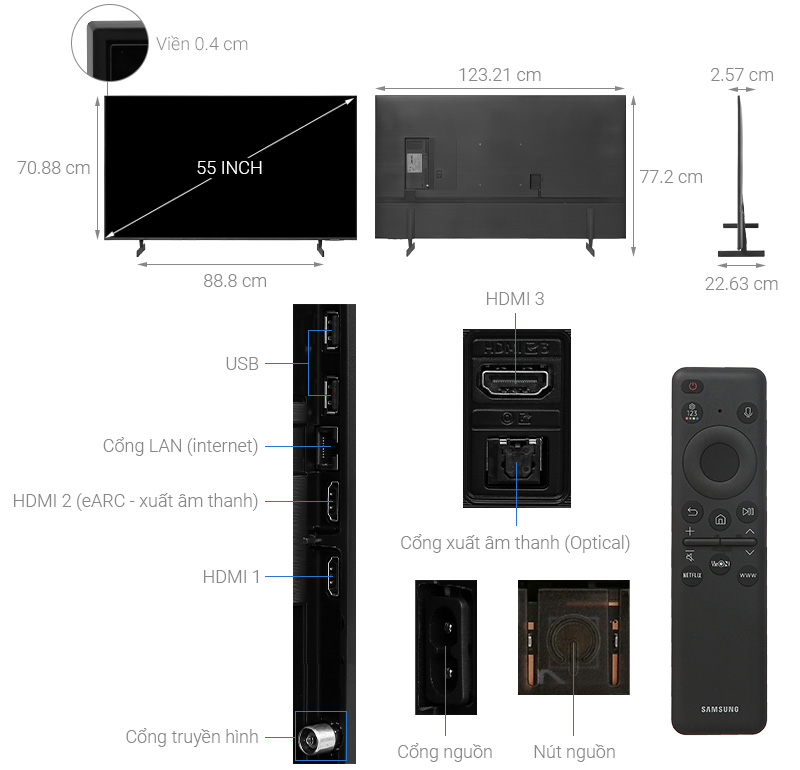 - Có thể điều khiển Smart tivi bằng khẩu lệnh nhờ trợ lý ảo Bixby (có tiếng Việt).