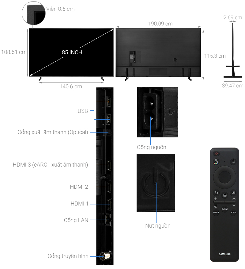 - Với màn hình 85 inch, chiếc tivi này là sự lựa chọn hoàn hảo để trang trí cho những không gian rộng lớn như phòng khách hoặc phòng họp.