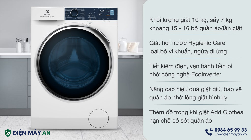 Thiết bị sử dụng công nghệ hơi nước Hygienic Care có khả năng diệt khuẩn, loại bỏ dị ứng khác thường bám trên quần áo, mang lại sự an toàn cho sức khoẻ, nhất là trẻ nhỏ và phụ nữ mang thai. Bên cạnh đó, là công nghệ Ultramix làm giảm thiểu các bám cặn bột giặt trên áo quần mang lại cảm giác dễ chịu, tránh ngứa ngáy khi sử dụng.