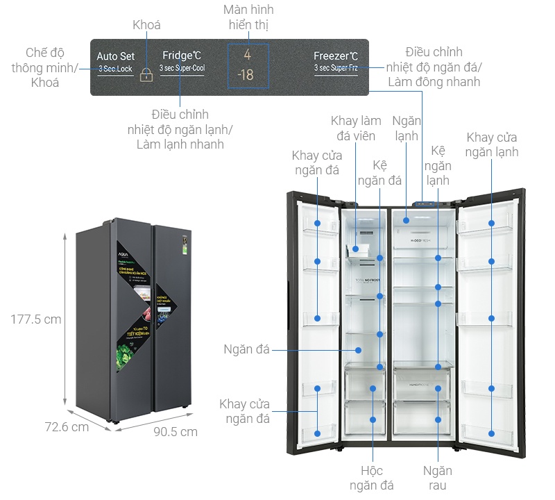 Tủ lạnh Aqua Inverter 646 lít Side By Side AQR-S682XA(SLB) là một lựa chọn lý tưởng cho các gia đình đông thành viên, vừa mang lại sự tiện nghi nhờ dung tích lưu trữ lớn, vừa tích hợp nhiều công nghệ hiện đại giúp bảo quản thực phẩm tối ưu. Với khả năng tiết kiệm điện và thiết kế sang trọng, sản phẩm này đáp ứng nhu cầu của những người tiêu dùng mong muốn một chiếc tủ lạnh bền bỉ, vận hành êm ái và dễ sử dụng trong không gian bếp hiện đại. Hãy cùng khám phá chiếc tủ lạnh này qua bài viết chia sẻ của Điện máy Quang Hưng nhé.