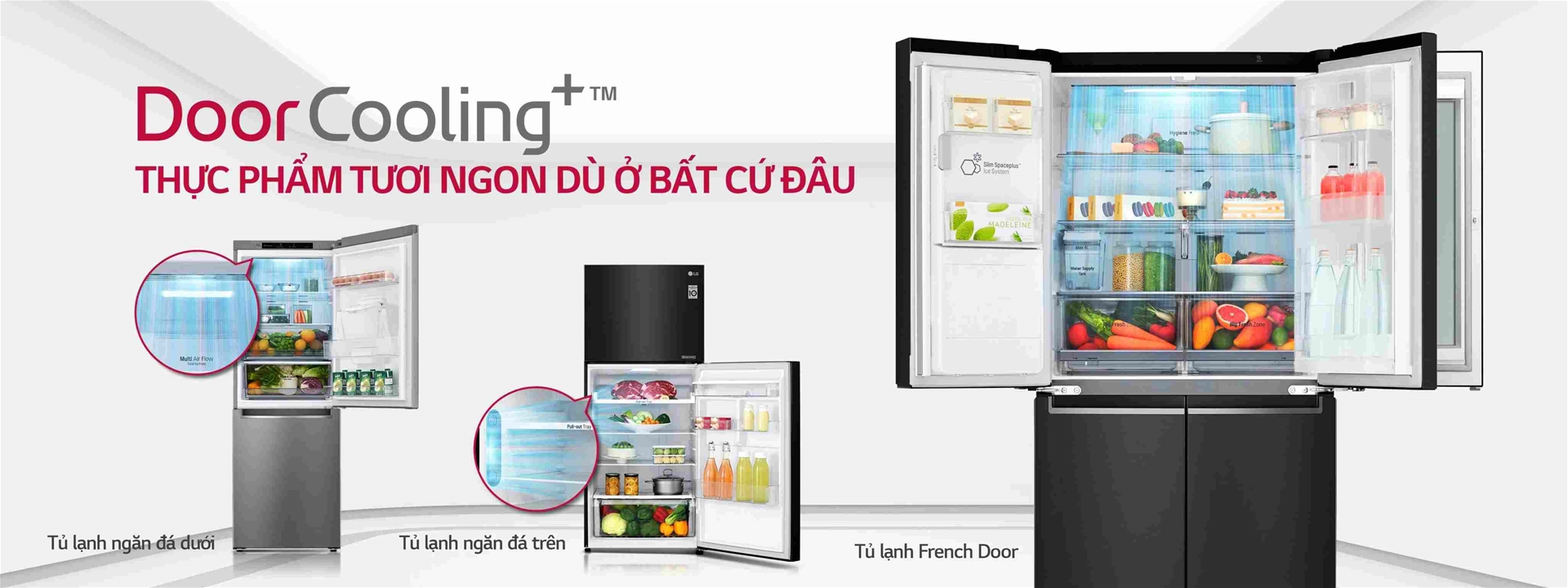Hiện nay tủ lạnh LG có 3 dòng chính, mỗi dòng đều có tính năng và ưu điểm khác nhau:
