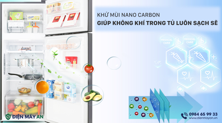 Công nghệ Nano Carbon của chiếc tủ LG GN-M208BL này sử dụng hệ thống các hoạt cacbon kích thước nano loại bỏ các tác nhân gây hỏng thức ăn, như nấm mốc, bụi bẩn, mùi axit và kiềm, vi khuẩn. Giúp tủ lạnh luôn trong lành, loại bỏ mùi hôi, đảm bảo sức khoẻ cho gia đình bạn.
