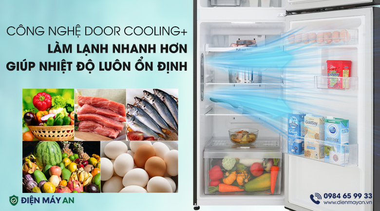 Công nghệ làm lạnh DoorCooling+™ của dòng tủ lạnh GN-M208BL đảm bảo nhiệt độ luôn ổn định, làm lạnh nhanh hơn 35%. Hệ thống này làm giảm sự chênh lệch nhiệt độ bên trong và phía cửa của khoang làm mát.