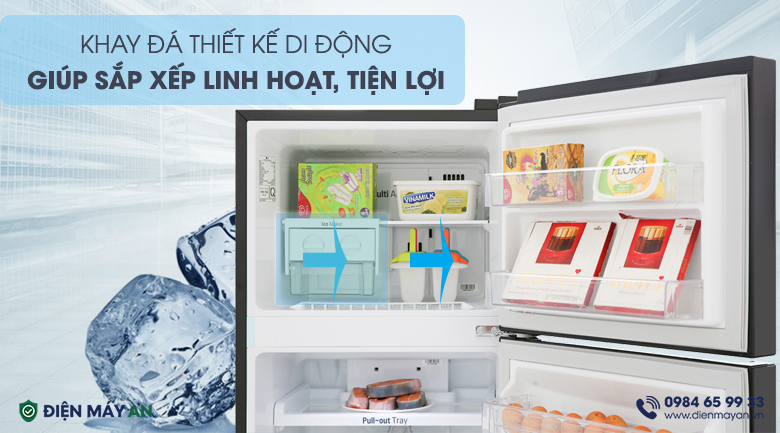 Với khay đá được thiết kế di động từ chiếc tủ LG GN-M208BL giúp bạn tháo lắp dễ dàng để tăng thêm không gian lưu trữ trong tủ, và thuận lợi cho việc vệ sinh.