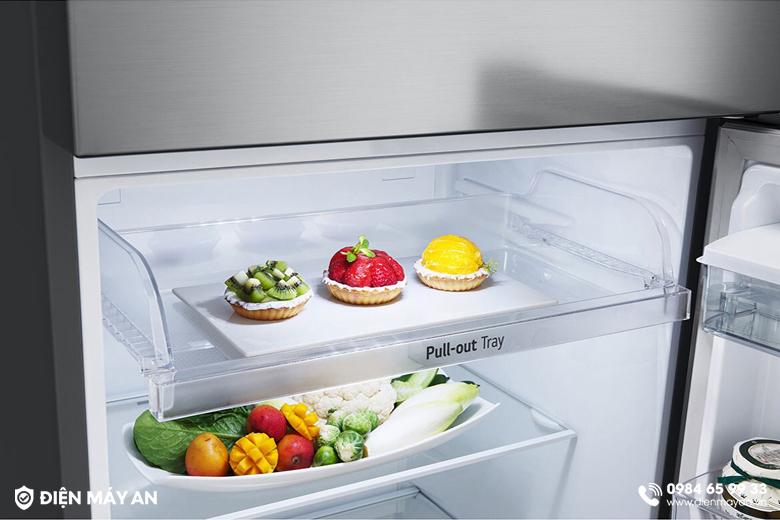 - Để tăng không gian lưu trữ cho ngăn đá, người dùng chỉ cần tháo khay đá di động một cách nhanh gọn.