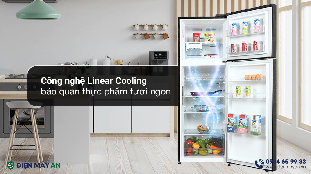 Tủ lạnh LG Inverter 335 lít GN-M332BL với công nghệ Linear Cooling có khả năng duy trì độ lạnh ổn định với mức dao động ±0.5℃, do vậy mà thực phẩm lưu trữ luôn đảm bảo độ tươi ngon, tránh tình trạng biến dạng do bị lạnh quá mức trong suốt quá trình sử dụng.
