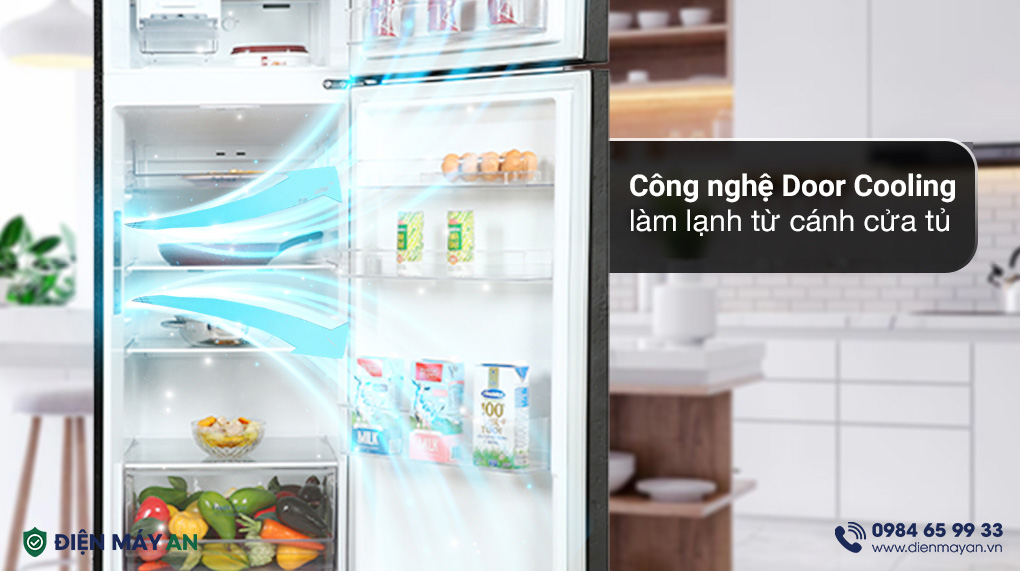 Công nghệ Door Cooling từ dòng LG GN-M332BL làm giảm sự chênh lệch nhiệt độ giữa bên trong và phía cửa tủ của khoang làm mát. Nhờ đó mà các thực phẩm hoặc nước uống đóng chai đặt ở vị trí cánh cửa tủ luôn được làm lạnh nhanh chóng.
