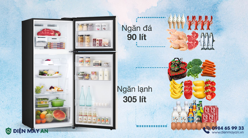 - Chiếc tủ lạnh phù hợp với gia đình từ 4 - 5 thành viên với dung tích sử dụng lên đến 395 lít.