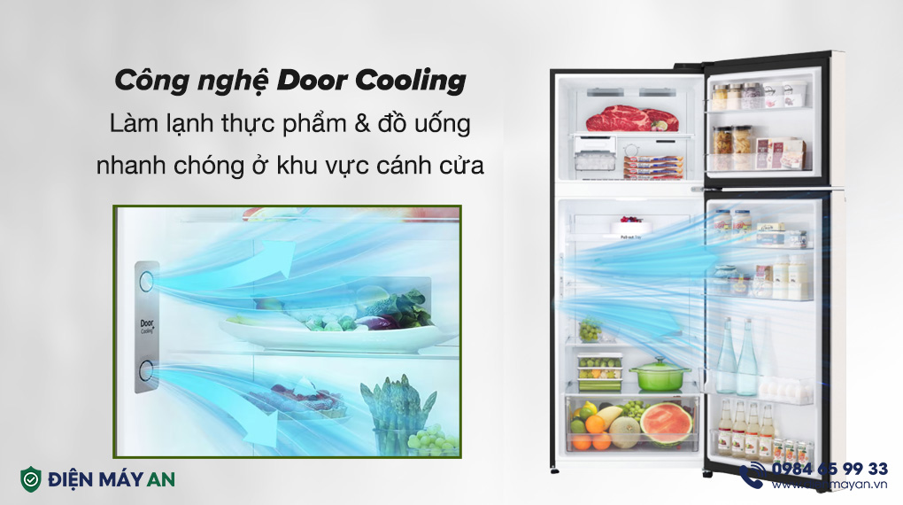 - Công nghệ Door Cooling từ dòng sản phẩm GN-B392BG: Giúp toả khí lạnh đều khắp các cánh cửa tủ, làm cho đồ uống và thực phẩm đặt tại vị trí này được làm lạnh nhanh chóng tức thì, đồng thời làm cho toàn diện thực phẩm được bảo quản bên trong luôn được mát lạnh.