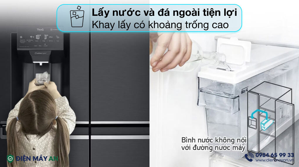 - Lấy đá ngoài một cách tiện lợi, dễ dàng là bạn có ngay viên đá nhỏ để thưởng thức mà không làm thất thoát hơi lạnh khi phải mở cửa tủ.