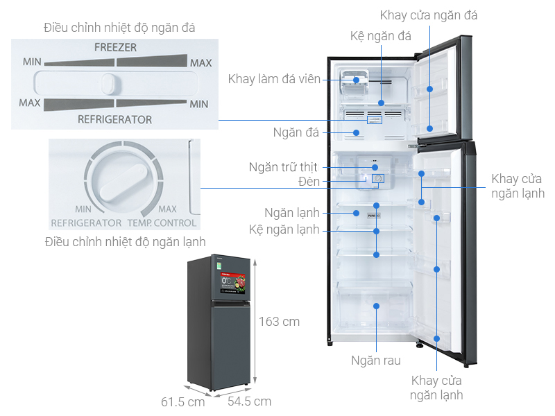 - Tủ lạnh Toshiba có dung tích lên đến 253 lít phù hợp cho các gia đình từ 2 - 3 thành viên sử dụng.