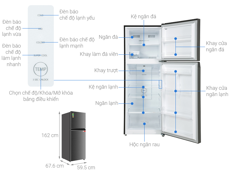 - Được thiết kế dạng hộp khay đá có thể di chuyển bao gồm vỉ đá và hộp đựng.