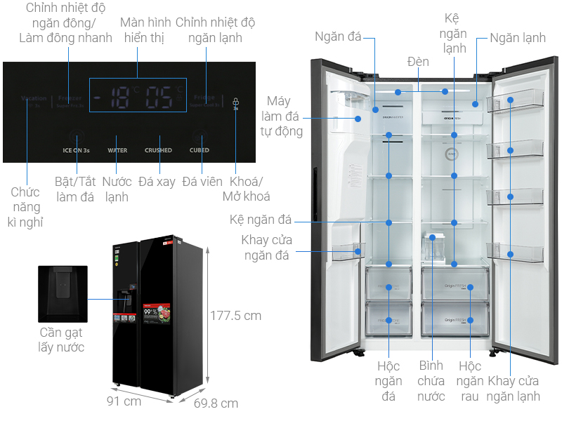 - Dung tích tủ lạnh lớn 568 lít đáp ứng cho các gia đình đông thành viên trên 5 người.