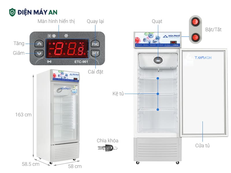 Tủ mát Hòa Phát 195 lít HSR D6195 sở hữu thiết kế nhỏ gọn, cửa kính Low-E chống đọng sương, cùng công nghệ làm lạnh gián tiếp không đóng tuyết và dàn lạnh đồng bền bỉ, mang đến hiệu quả làm mát vượt trội. Với loạt tiện ích thông minh như bánh xe di chuyển, đèn LED chiếu sáng và cảnh báo nhiệt độ, đây là sản phẩm phù hợp cho hộ kinh doanh nhỏ, quán ăn hoặc gia đình cần thiết bị bảo quản thực phẩm hiện đại, tiết kiệm và bền bỉ theo thời gian. Hãy liên hệ tại fanpage Điện máy Quang Hưng hoặc theo số Hotline 𝟎𝟗𝟗 𝟑𝟑𝟗 𝟓𝟔𝟔𝟖 để được tư vấn chi tiết và “ring” ngay chiếc tủ mát hiện đại, bền bỉ cho gia đình bạn ngay hôm nay.