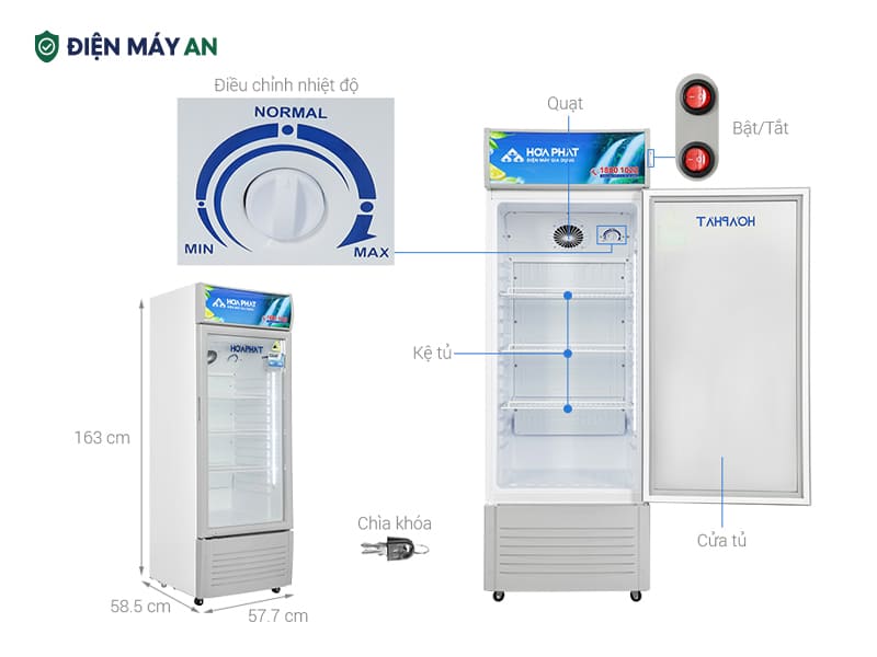 Tủ mát Hòa Phát 195 lít HSR S6195 là lựa chọn lý tưởng cho các cửa hàng, quán ăn hoặc tiệm tạp hóa nhỏ cần bảo quản và trưng bày đồ uống. Sản phẩm nổi bật với công nghệ làm lạnh trực tiếp, kính Low-E chống đọng sương và thiết kế nhỏ gọn, tinh tế, giúp nâng tầm không gian trưng bày. Cùng Điện máy Quang Hưng khám phá những tính năng nổi bật qua bài viết bên dưới.