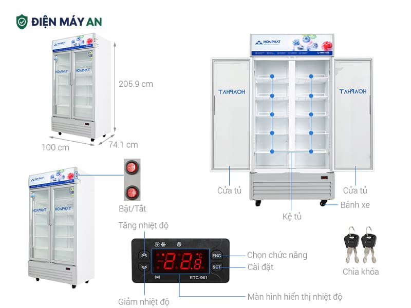 Tủ mát Hoà Phát 812 lít HSR D8812 với thiết kế sang trọng: